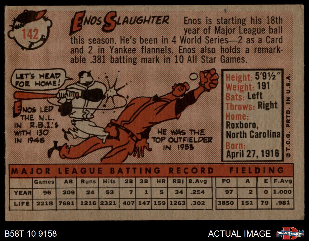 1958 Topps #142 Enos Slaughter 4 - VG/EX