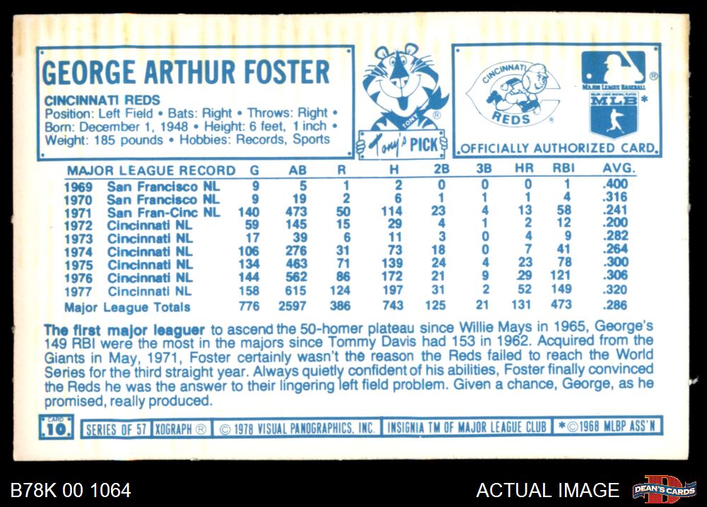 1978 Kellogg's #10 George Foster 2 - GOOD