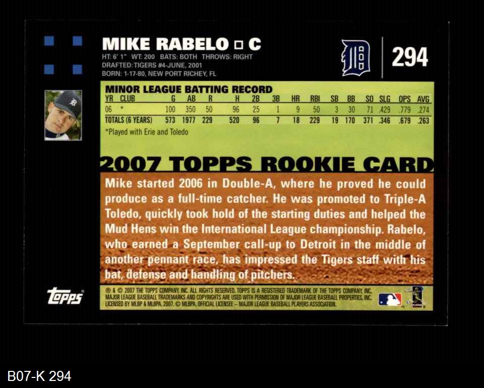 2007 Topps #294 Mike Rabelo 8 - NM/MT