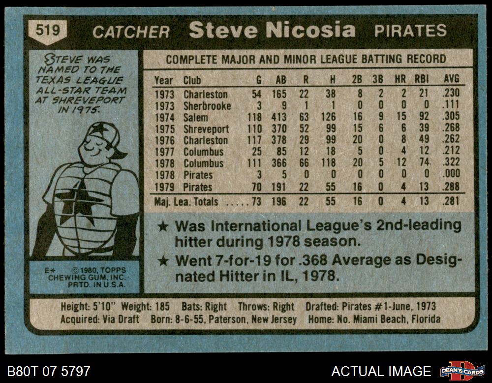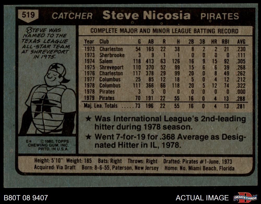 1980 Topps #519 Steve Nicosia 6 - EX/MT