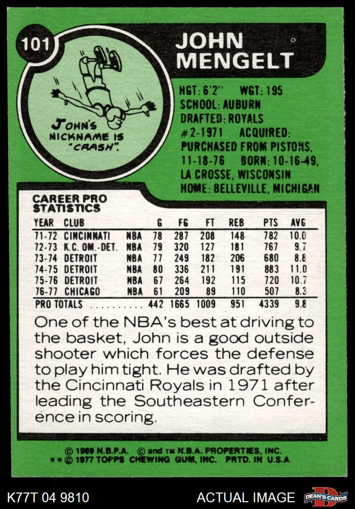 1977 Topps #101 John Mengelt 5 - EX