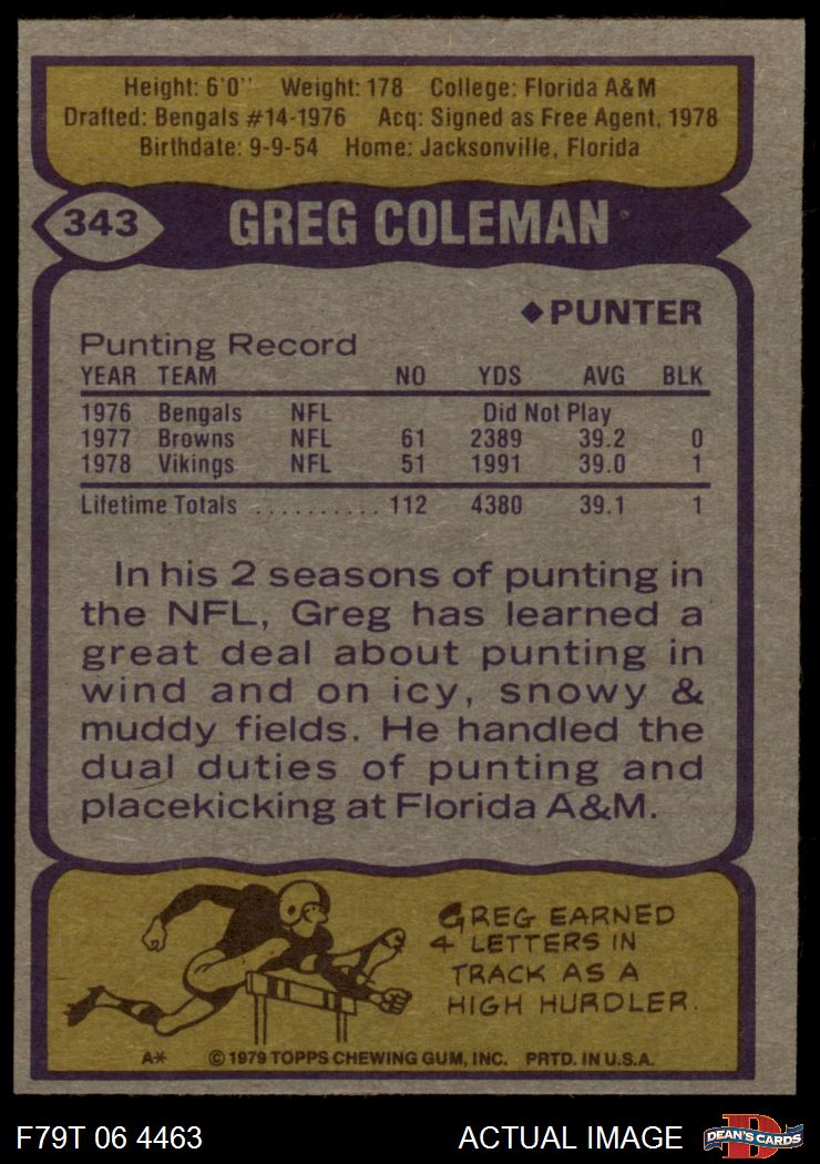 1979 Topps #343 Greg Coleman
