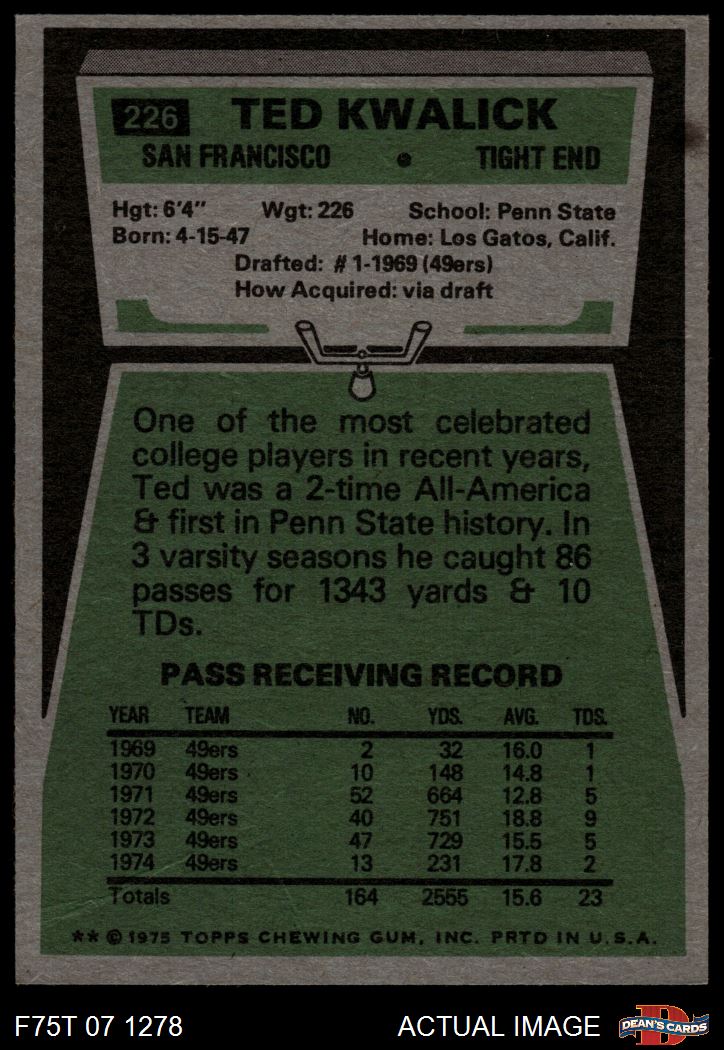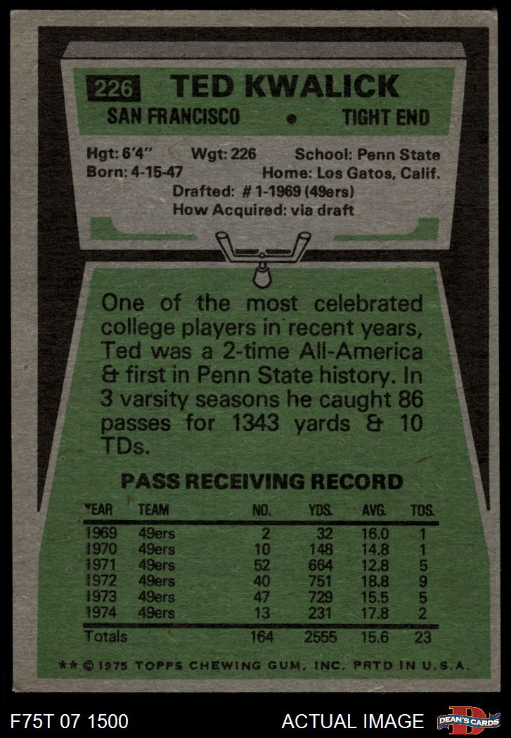 1975 Topps #226 Ted Kwalick