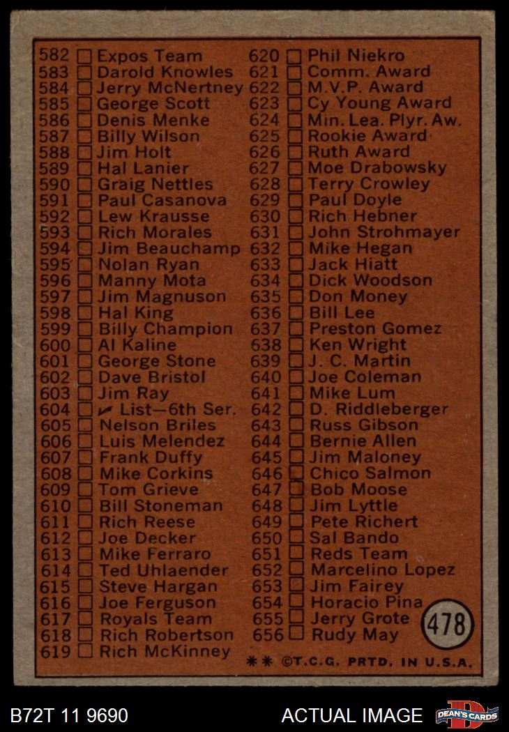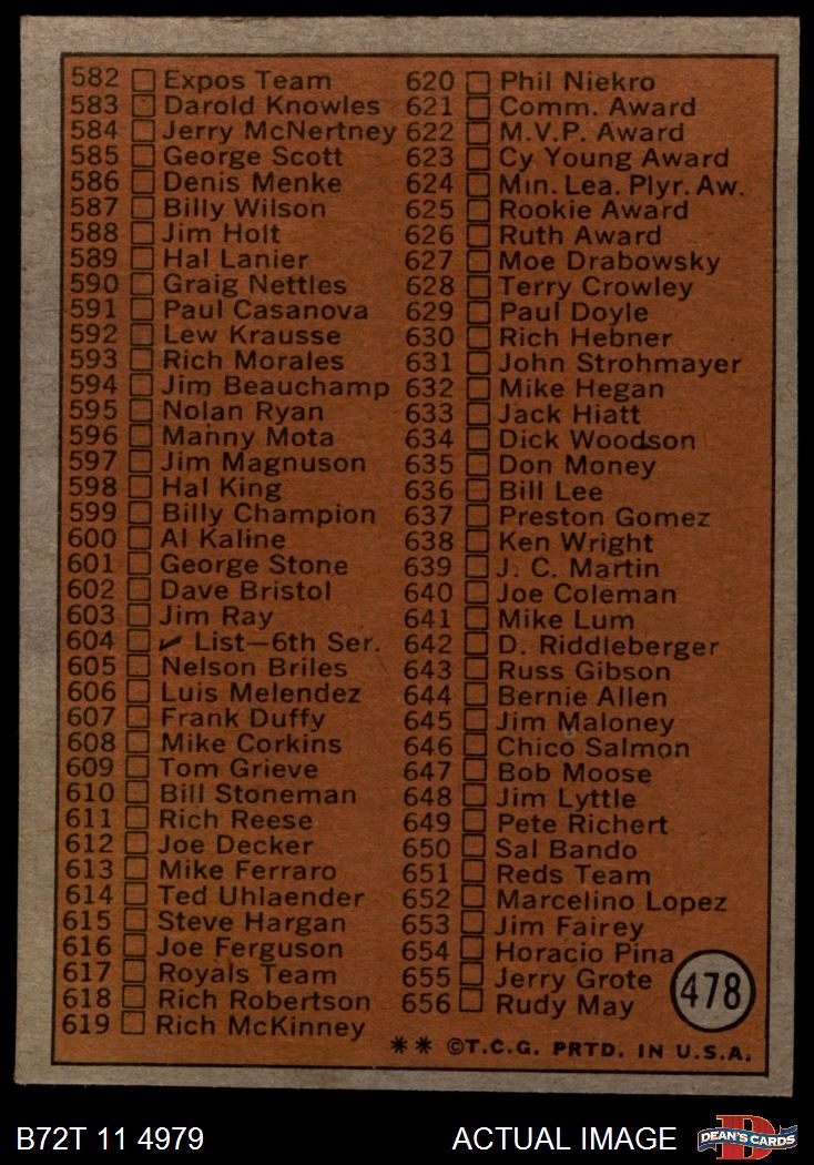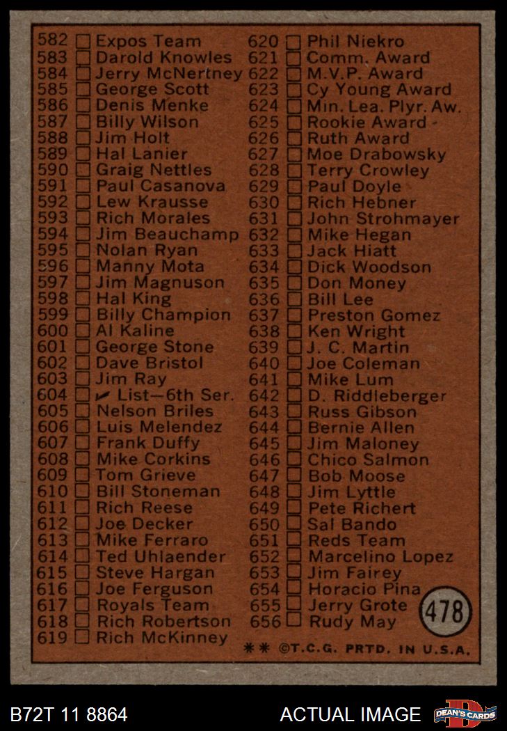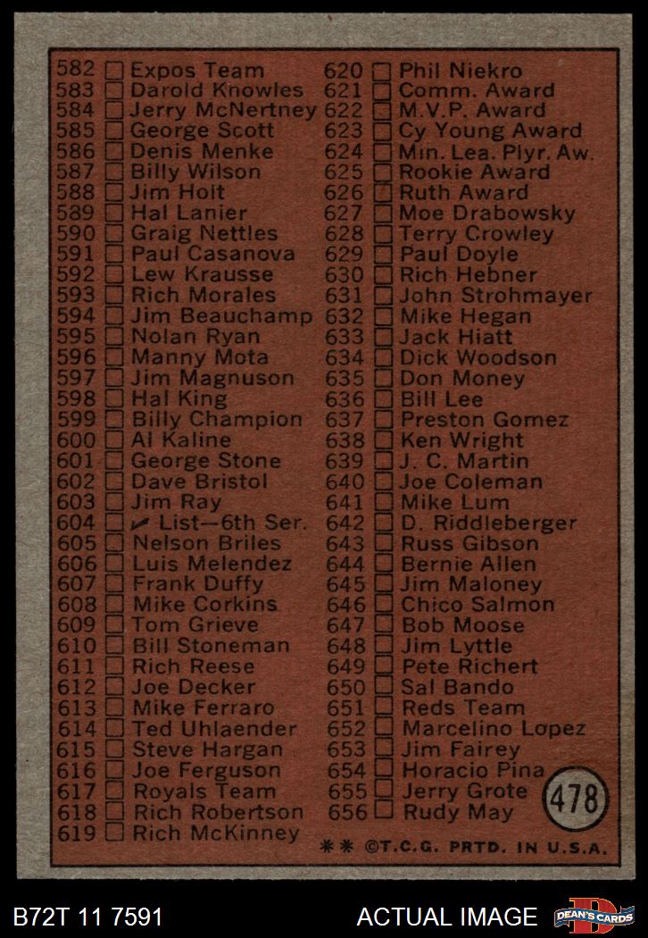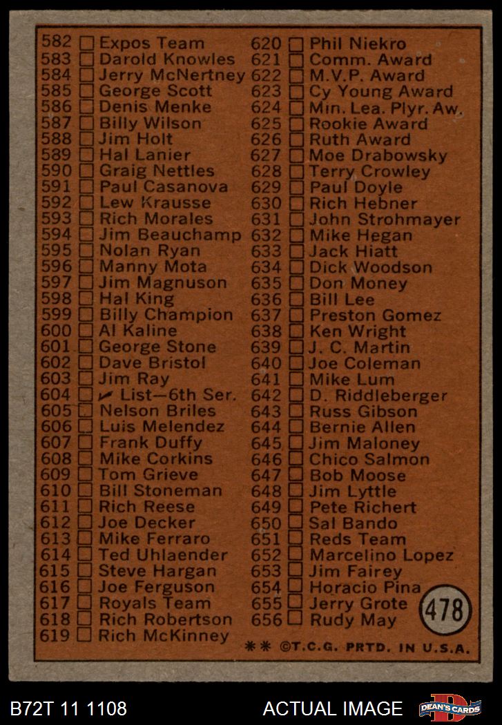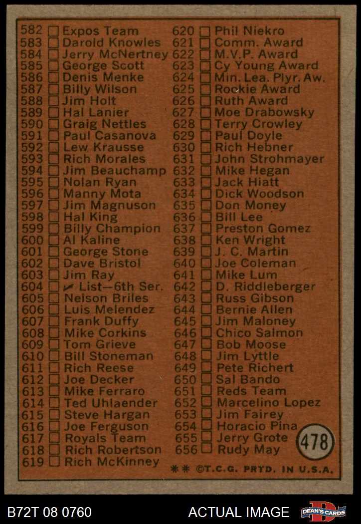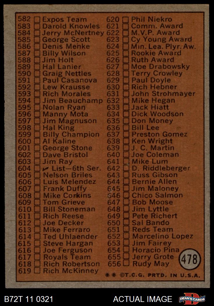 1972 Topps #478 Checklist 5