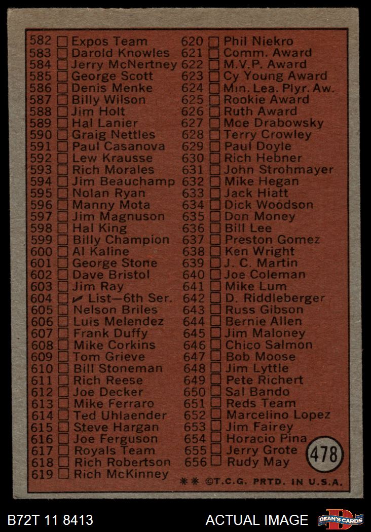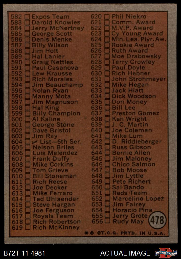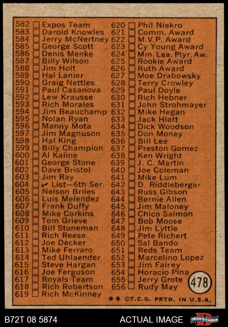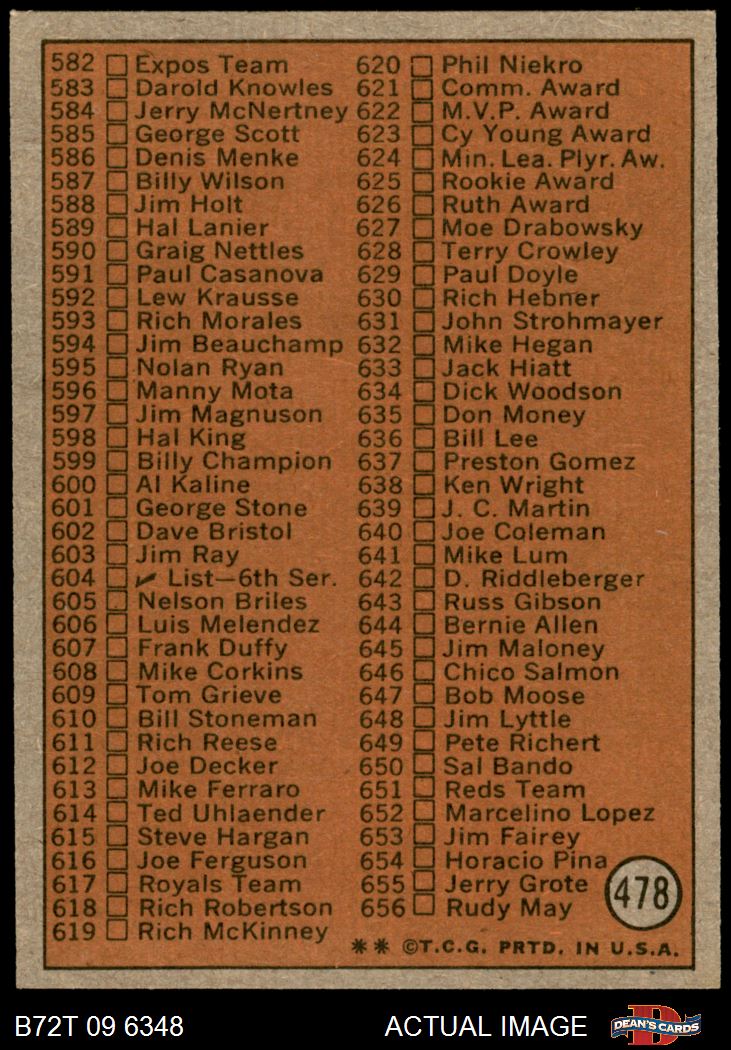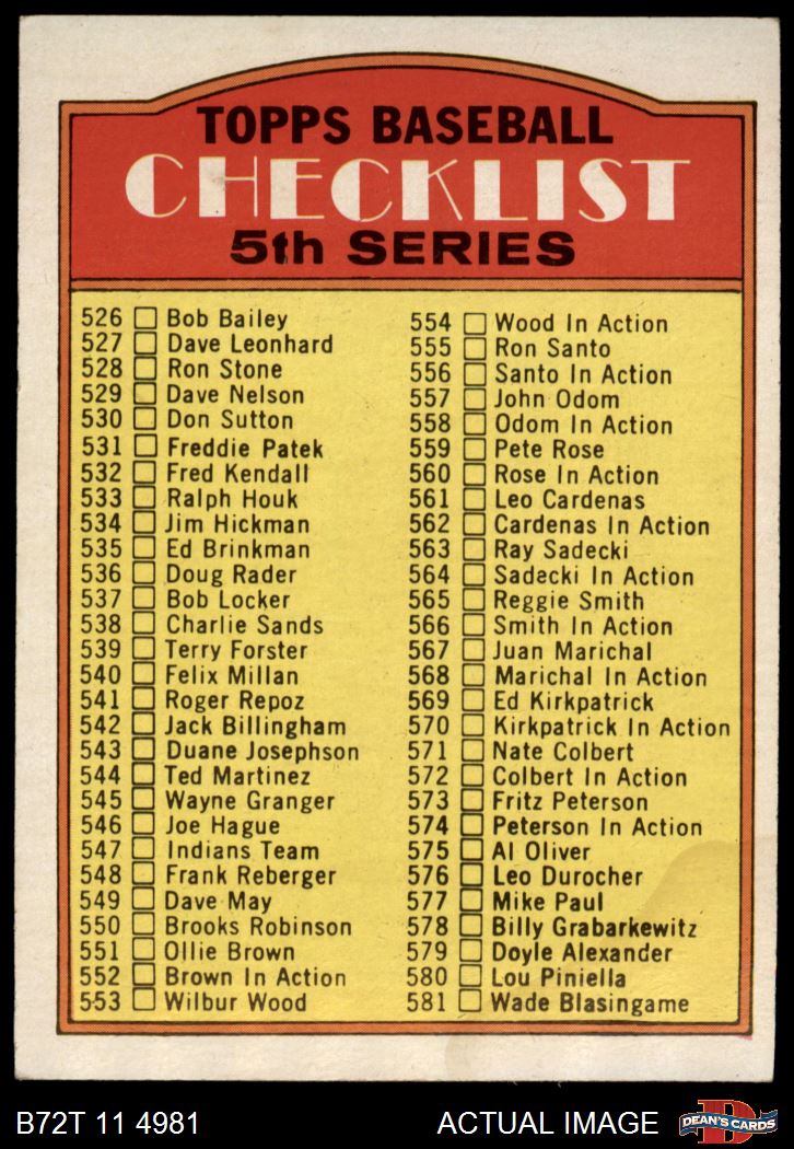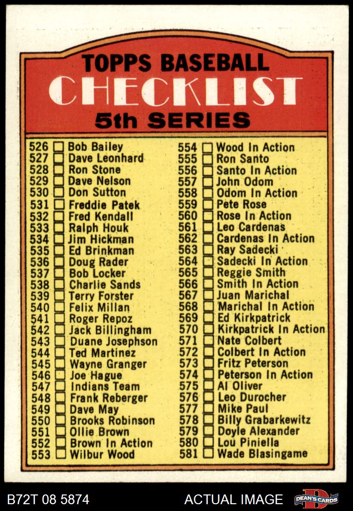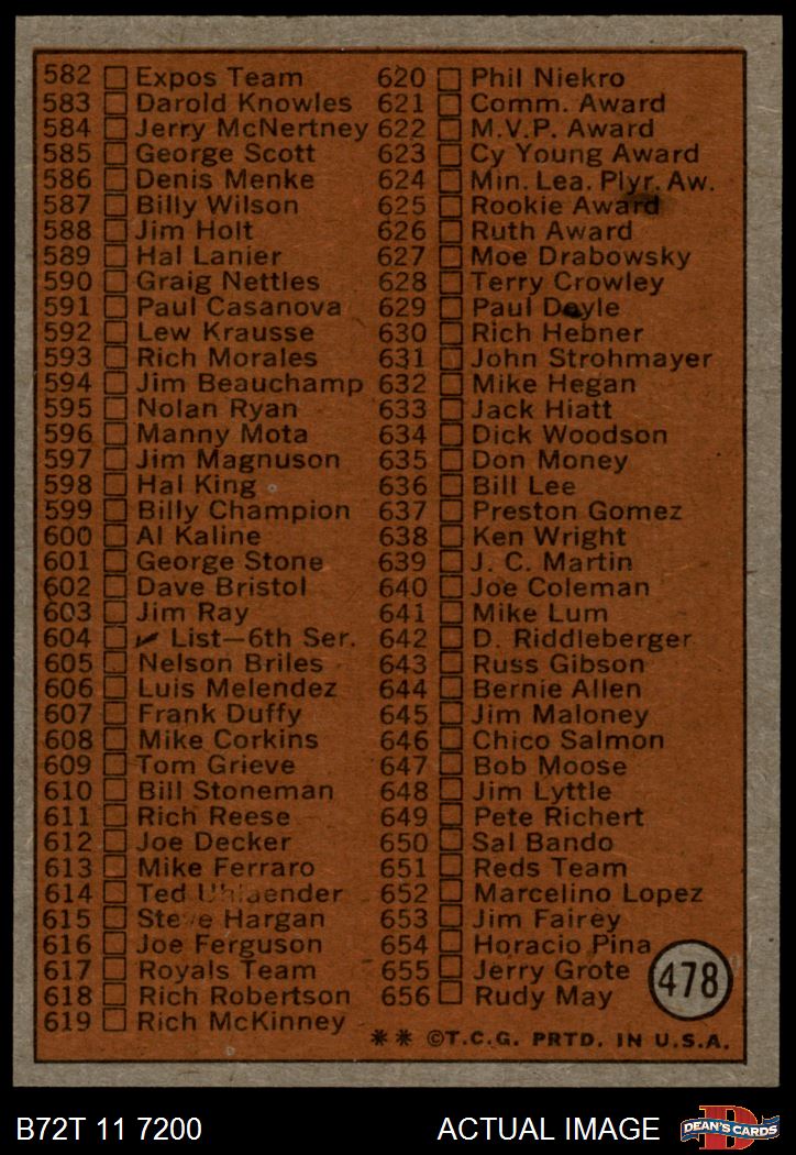 1972 Topps #478 Checklist 5