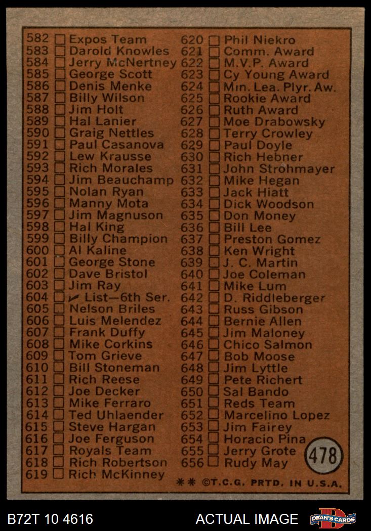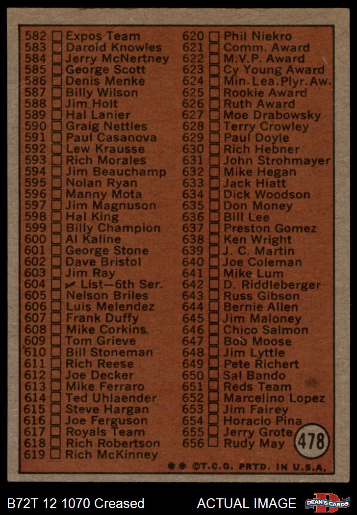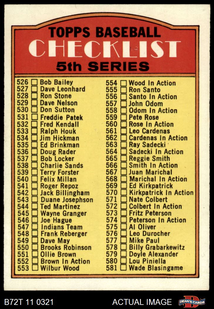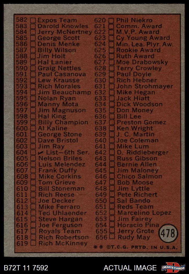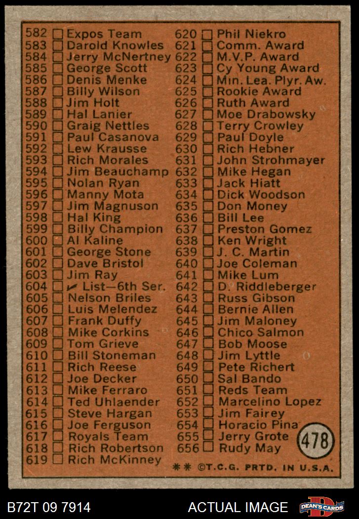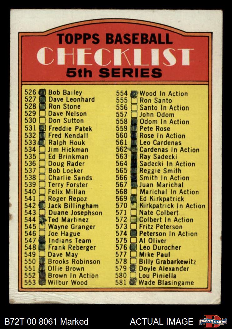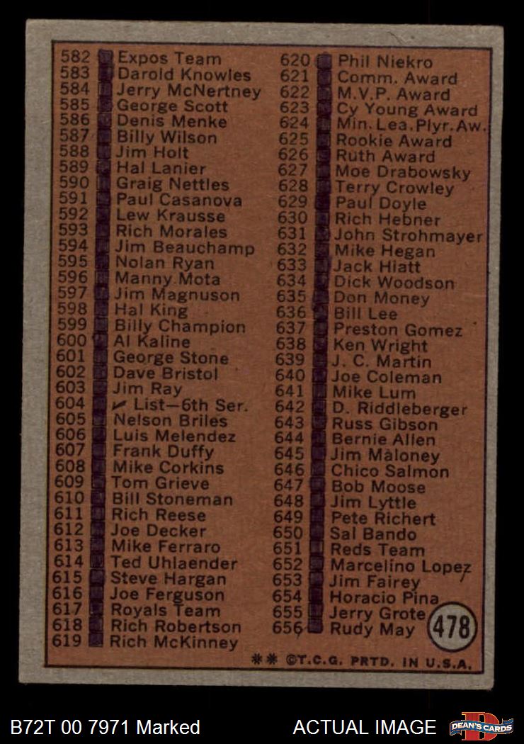 1972 Topps #478 Checklist 5