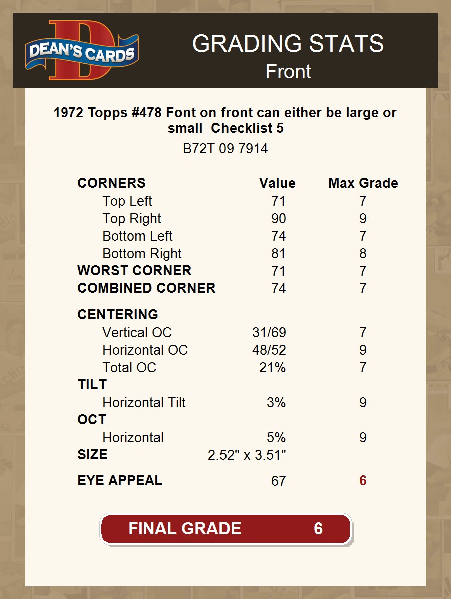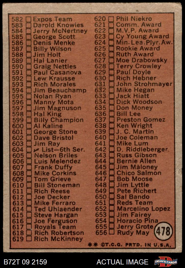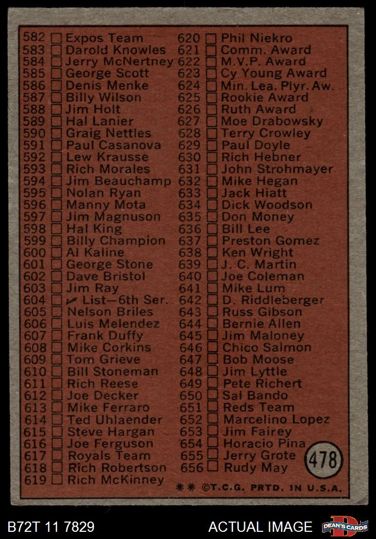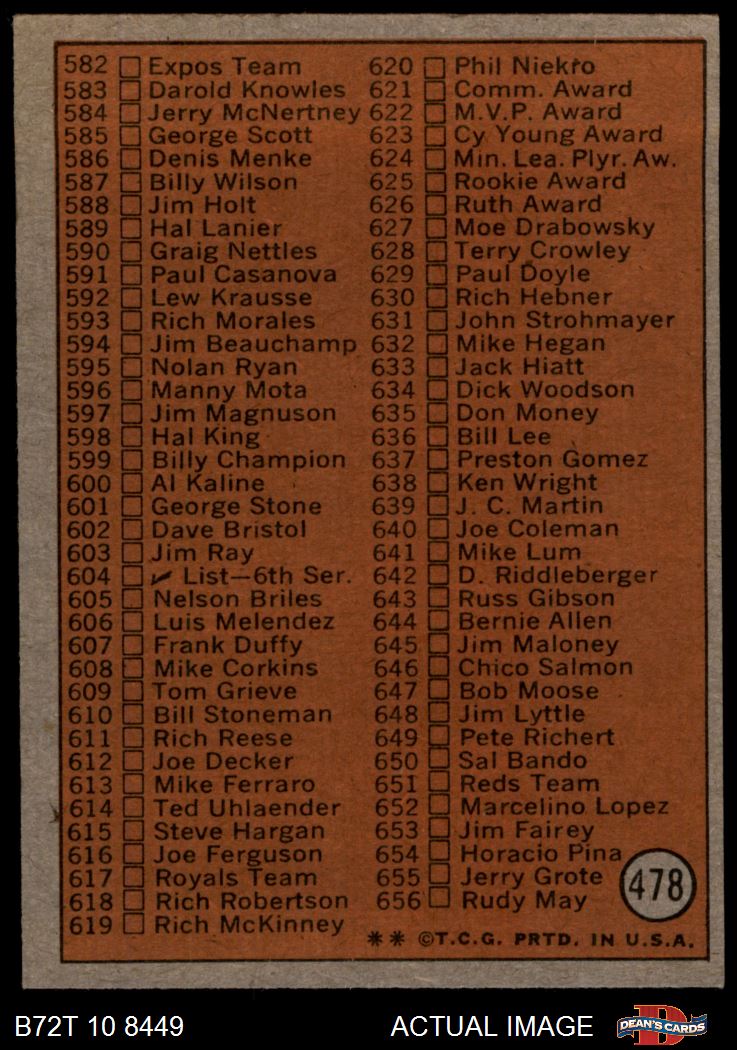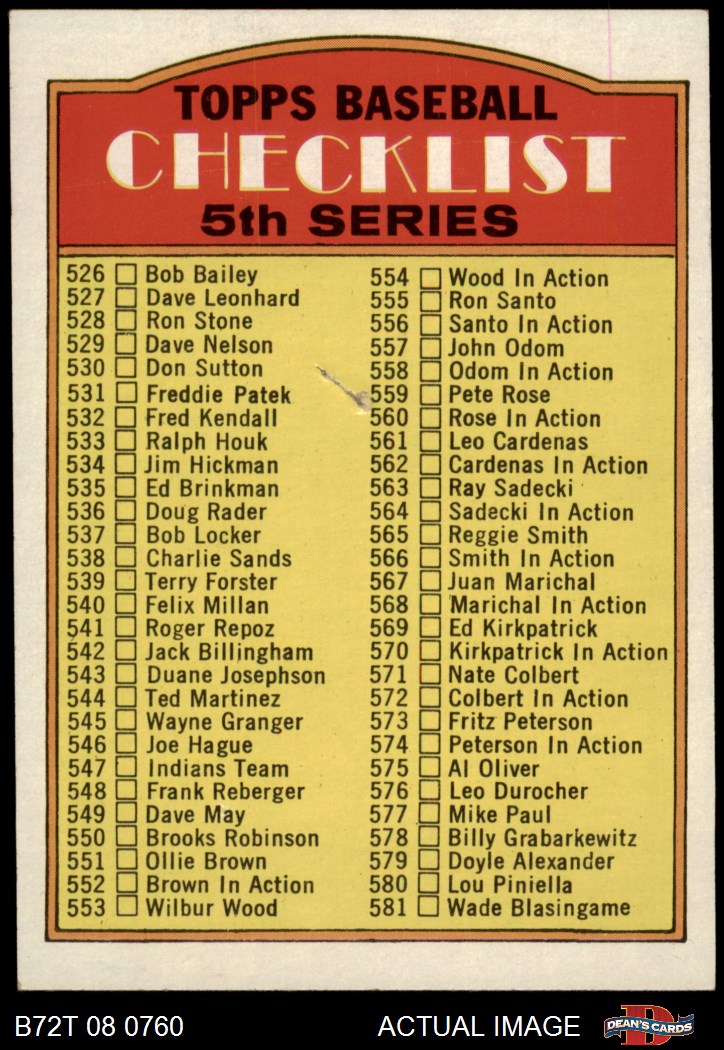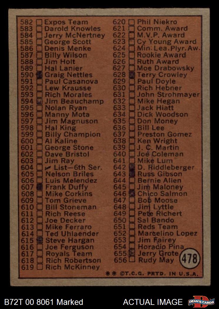 1972 Topps #478 Checklist 5