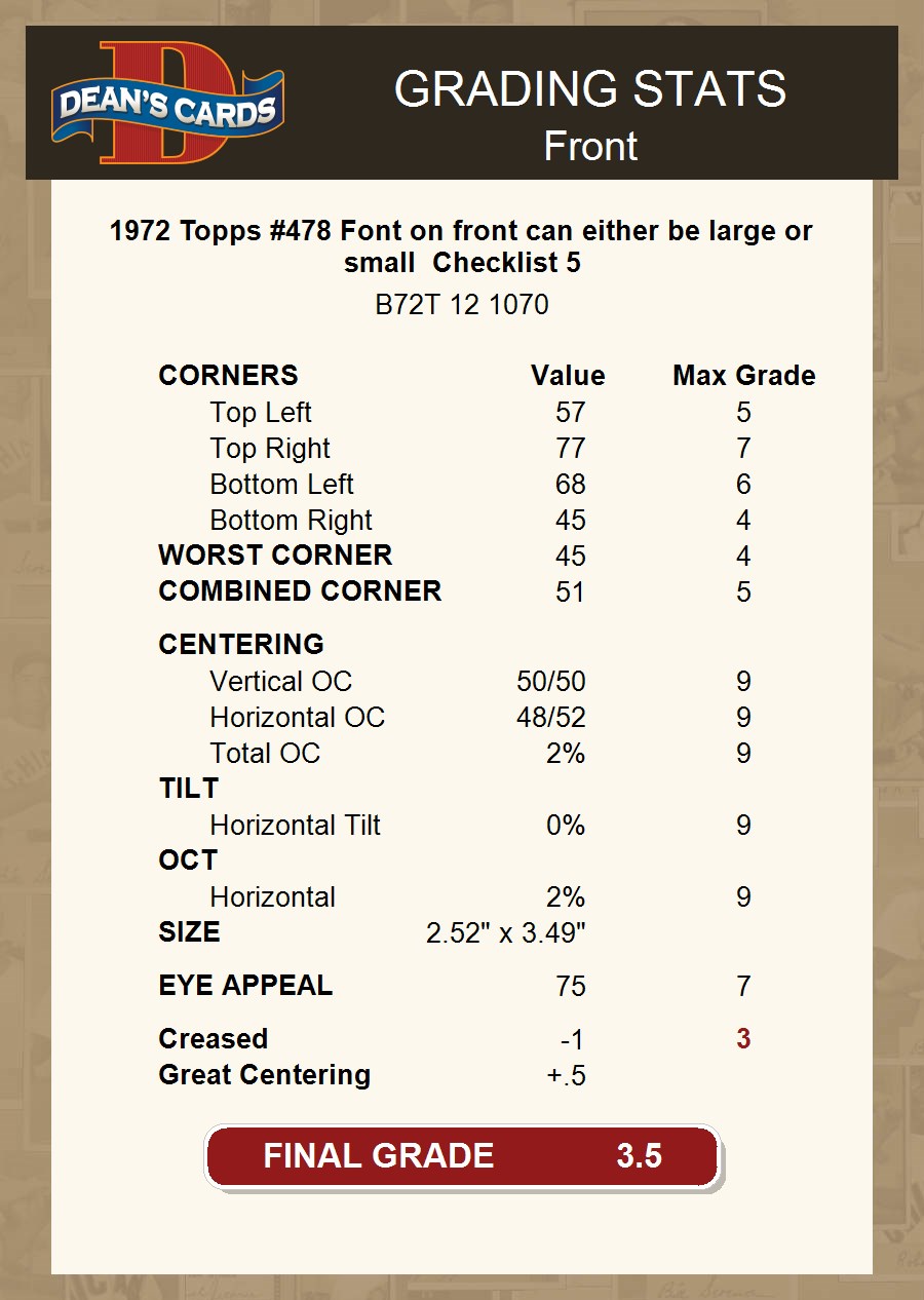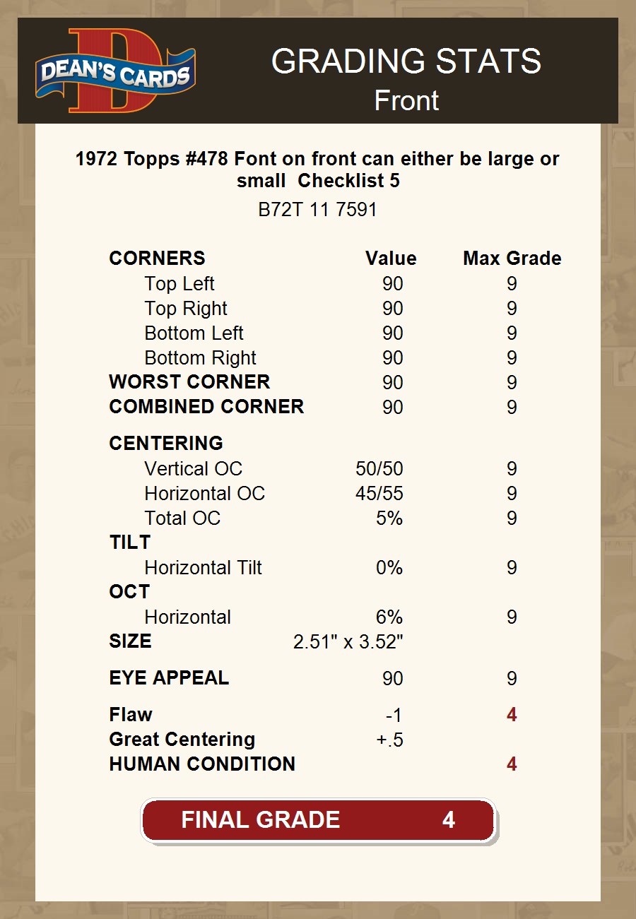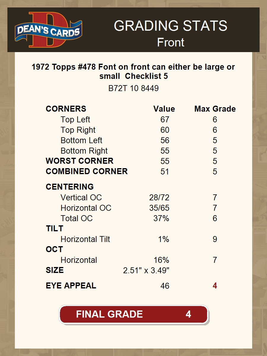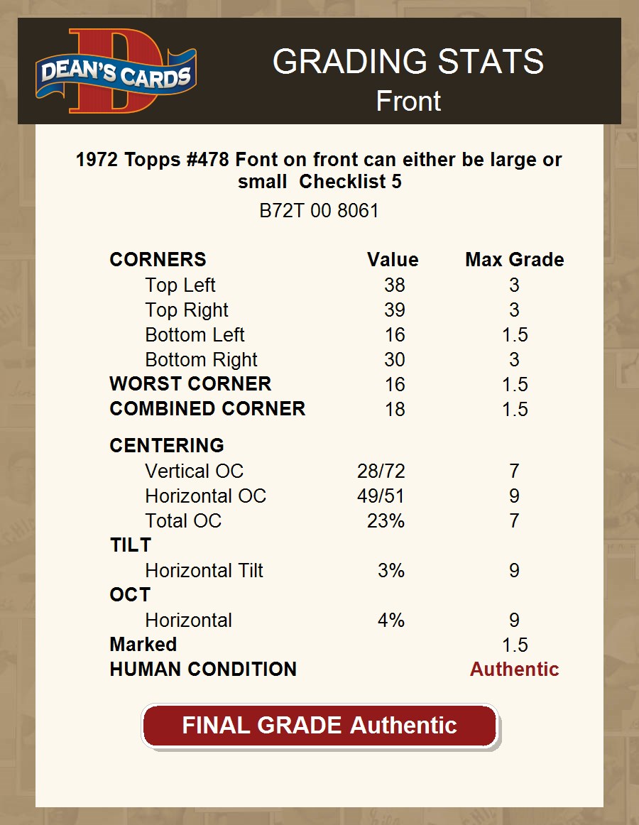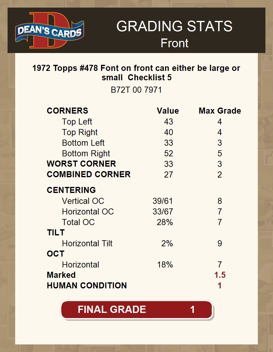 1972 Topps #478 Checklist 5