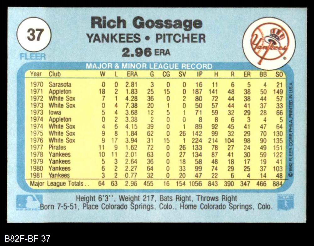 1982 Fleer #37 Goose Gossage 8 - NM/MT