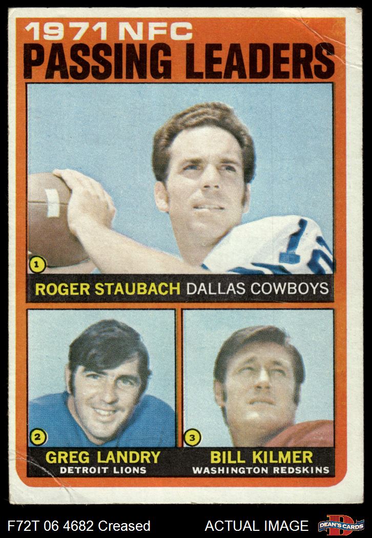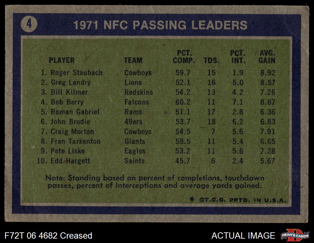 1972 Topps #4 - Roger Staubach / Greg Landry / Billy Kilmer NFC Passing Leaders 2 - GOOD