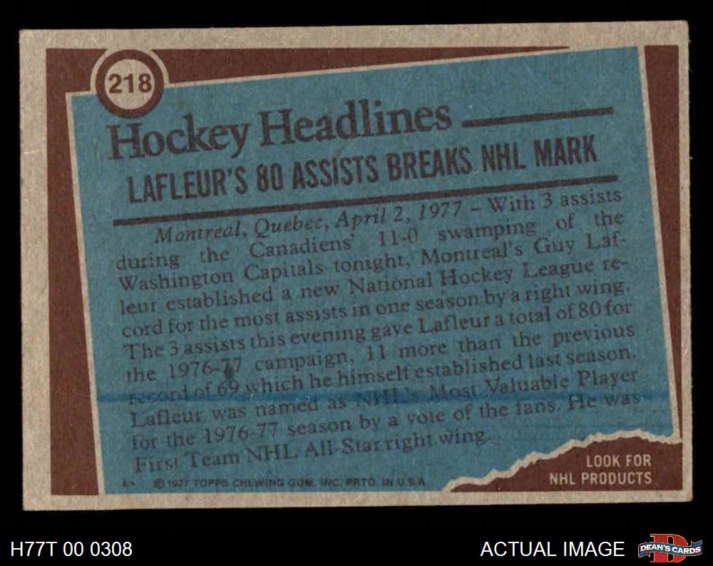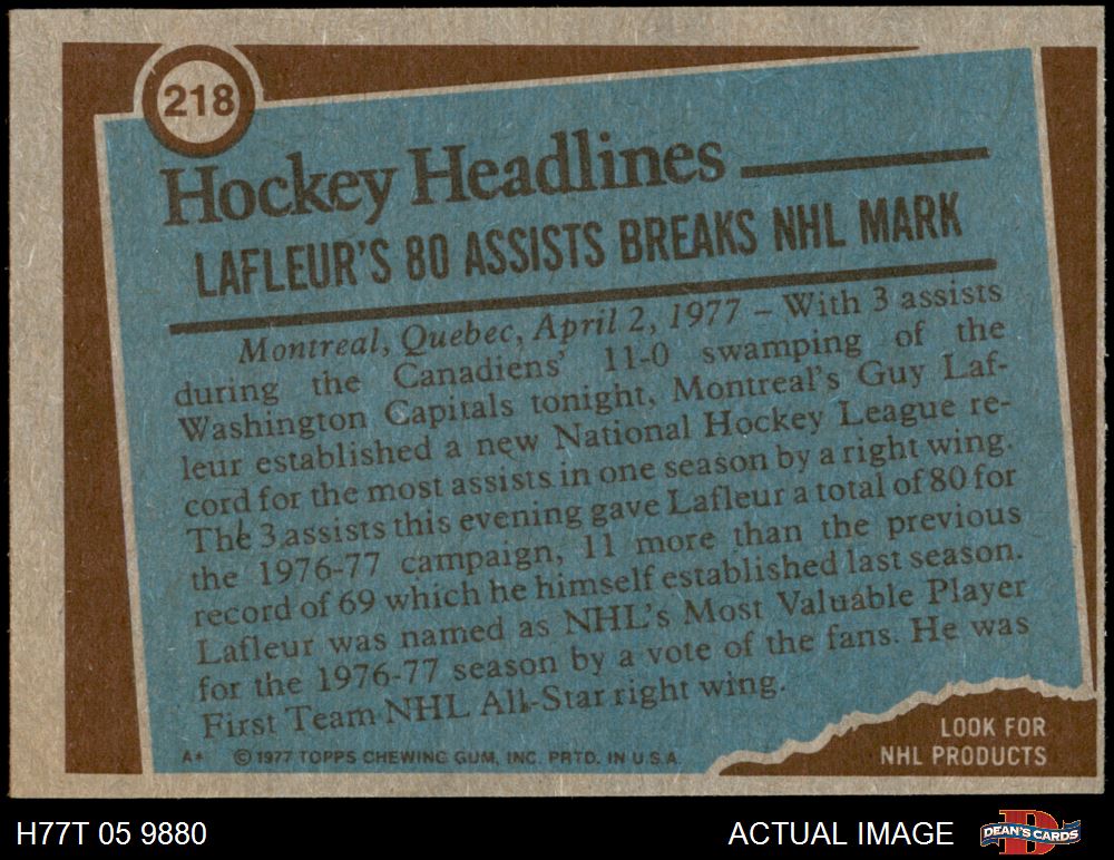 1977 Topps #218 Record Breaker - Most Assists - Season - Right Wing