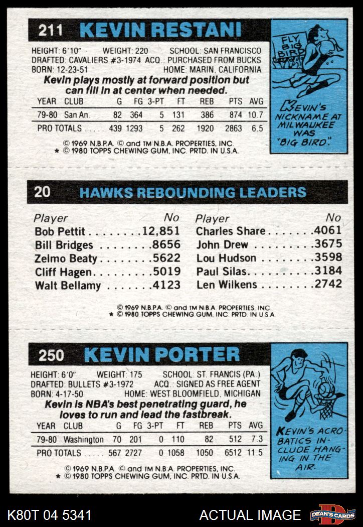 1980 Topps - Kevin Porter / Dan Roundfield / Kevin Restani 250 / 20 / 211 7 - NM