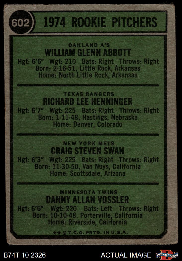 Craig Swan / Glenn Abbott / Rick Henninger / Dan Vossler (20 available)