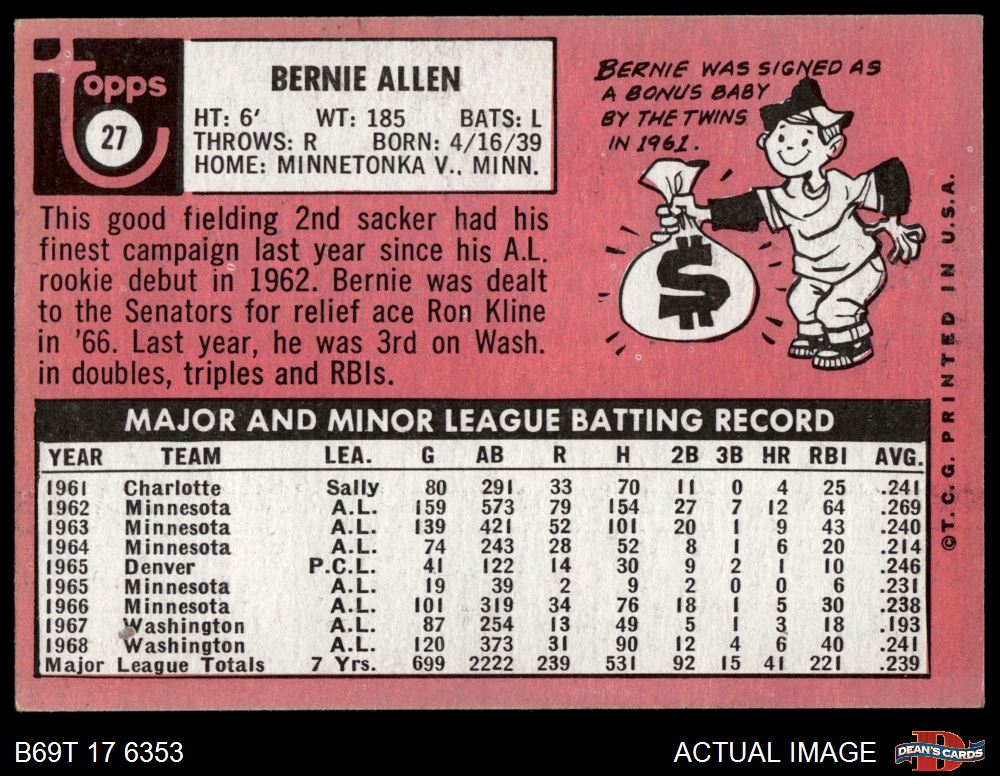 1969 Topps #27 Bernie Allen 4 - VG/EX