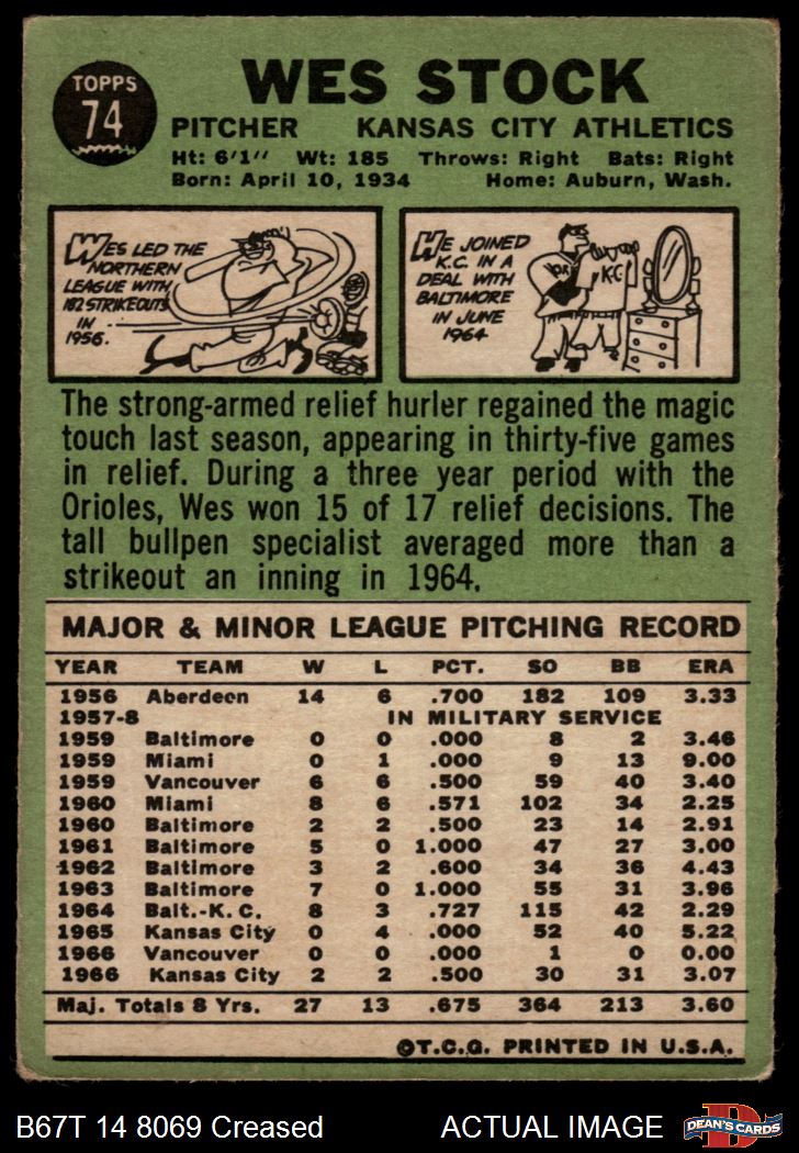 1967 Topps #74 Wes Stock Front Thumbnail