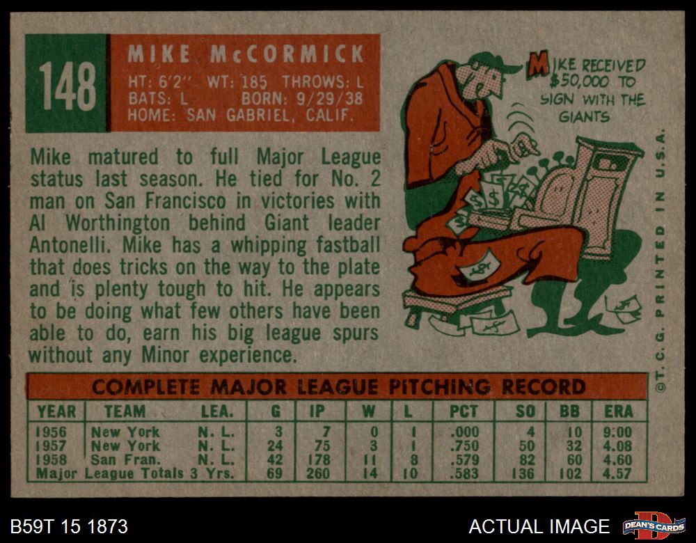 1959 Topps #148 Mike McCormick