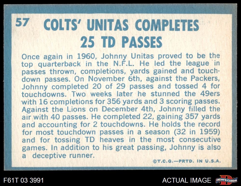 1961 Topps #57 - Johnny Unitas 1960 Football Highlights 7 - NM