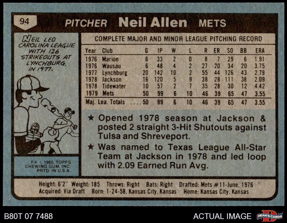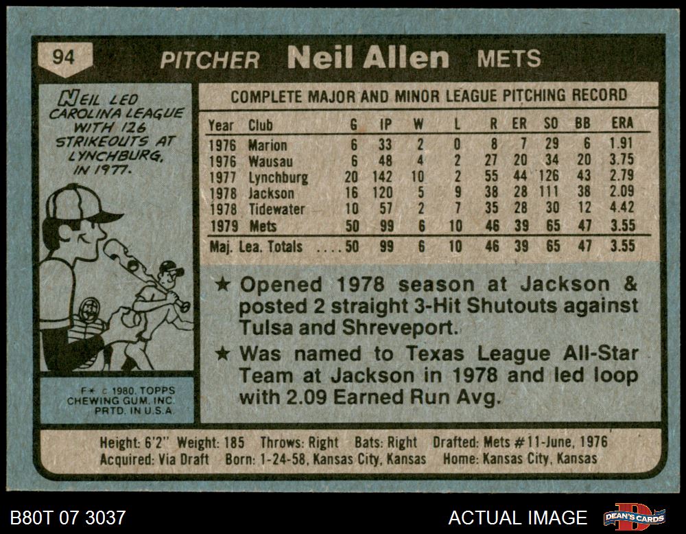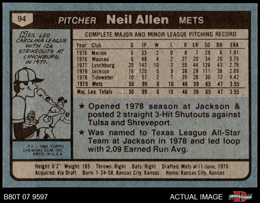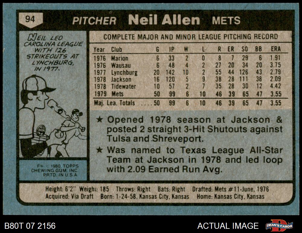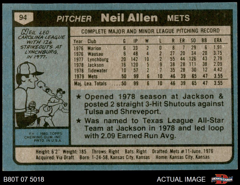 1980 Topps #94 Neil Allen 8 - NM/MT