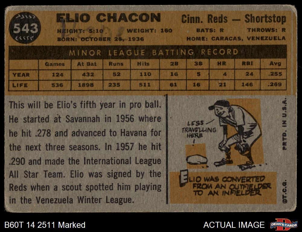1960 Topps #543 Elio Chacon 1.5 - FAIR