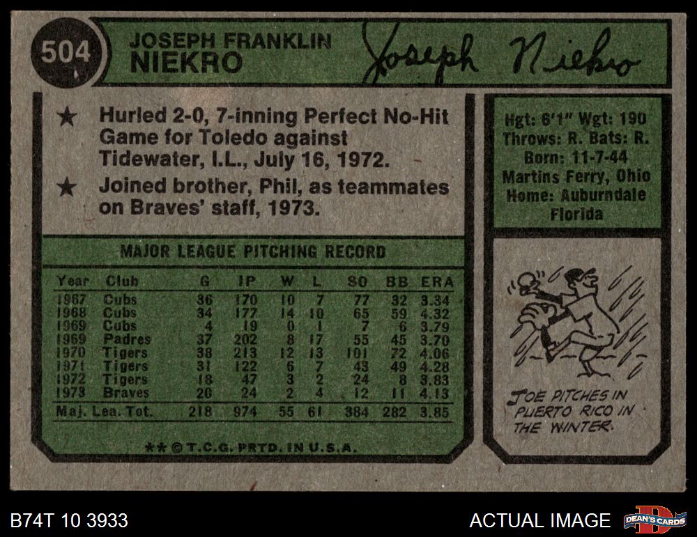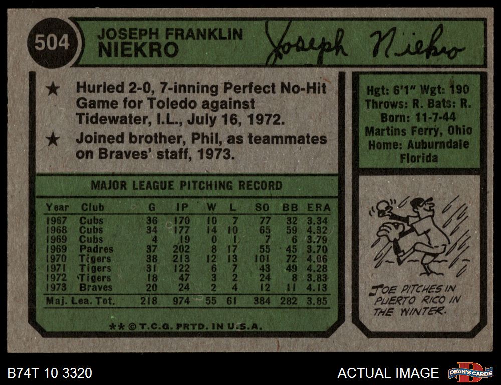 1974 Topps #504 Joe Niekro