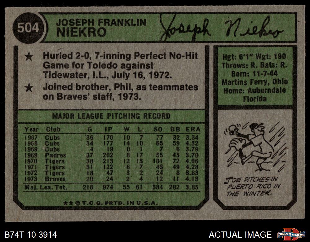 1974 Topps #504 Joe Niekro 6 - EX/MT
