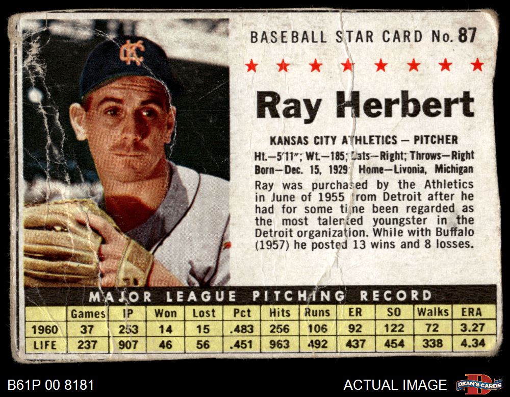 1961 Post Cereal #87 BOX Ray Herbert AUTHENTIC