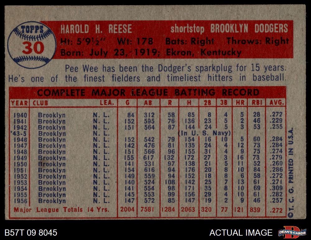 1957 Topps #30 Pee Wee Reese 4 - VG/EX