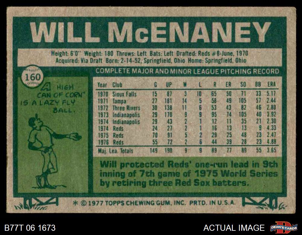 1977 Topps #160 Will McEnaney 1.5 - FAIR