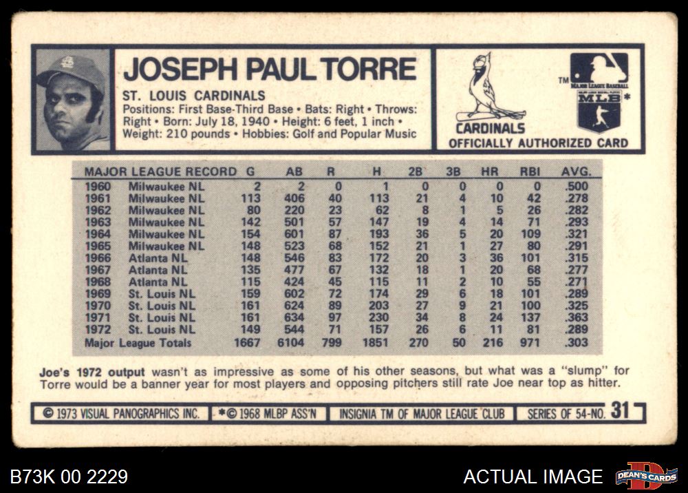 1973 Kellogg's #31 Joe Torre 3 - VG