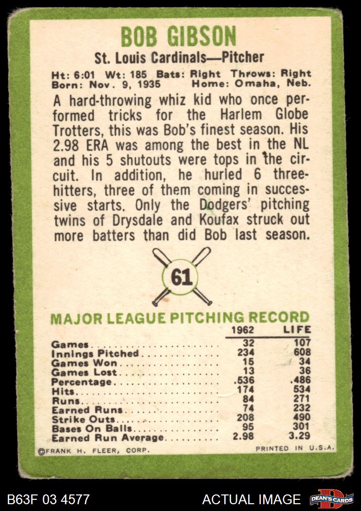 1963 Fleer #61 Bob Gibson 1.5 - FAIR