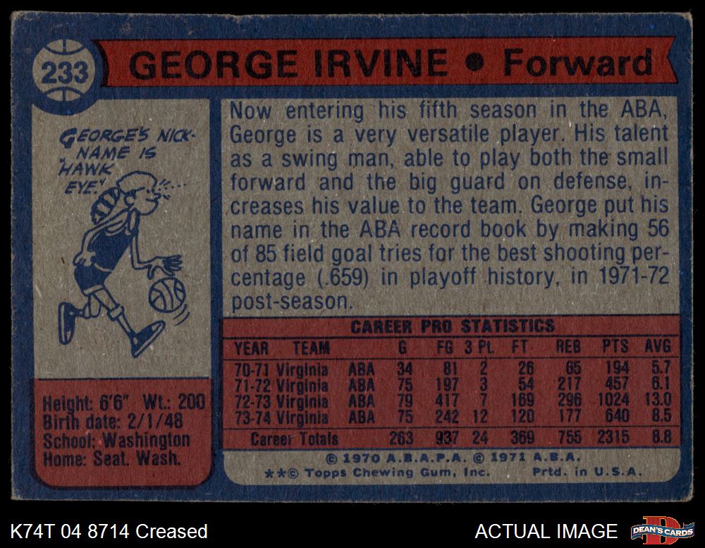 1974 Topps #233 George Irvine 2 - GOOD