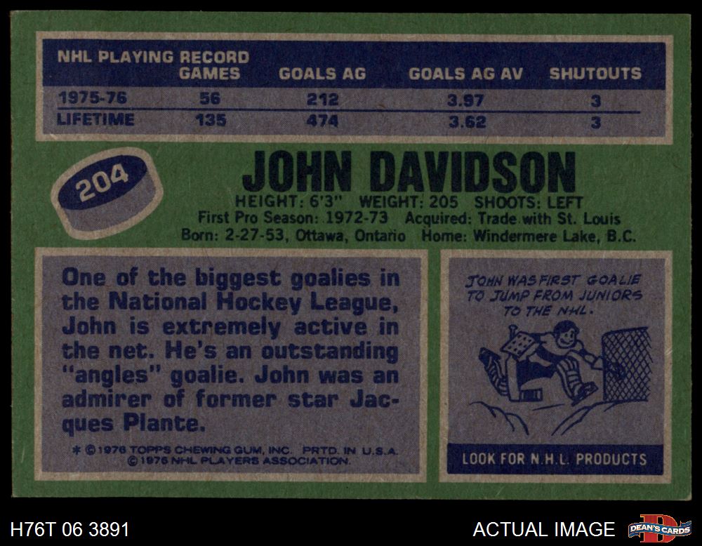 1976 Topps #204 John Davidson 4 - VG/EX