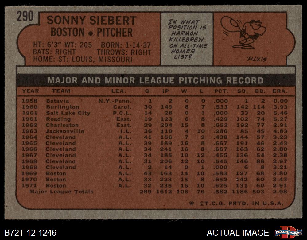 1972 Topps #290 Sonny Siebert 4.5 - VG/EX+