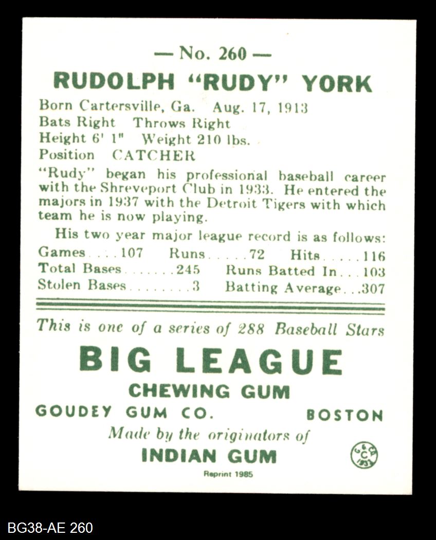 1938 Goudey Heads-Up Reprint #260 Rudy York 8 - NM/MT