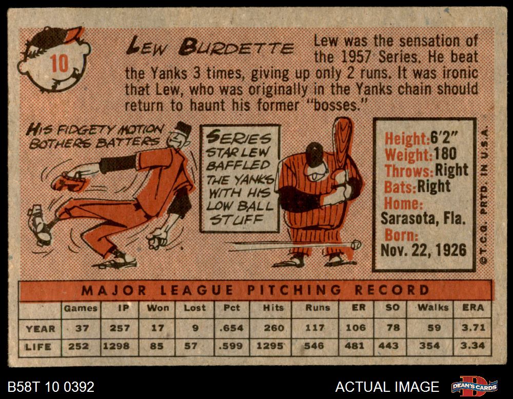1958 Topps #10 Lew Burdette 4.5 - VG/EX+