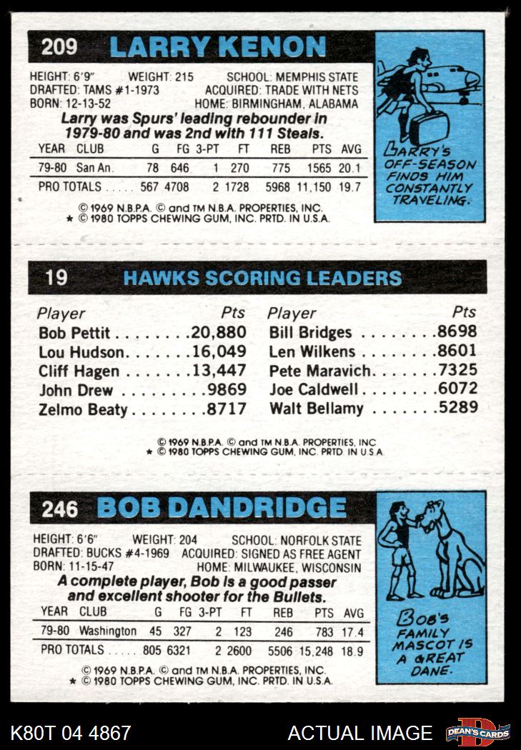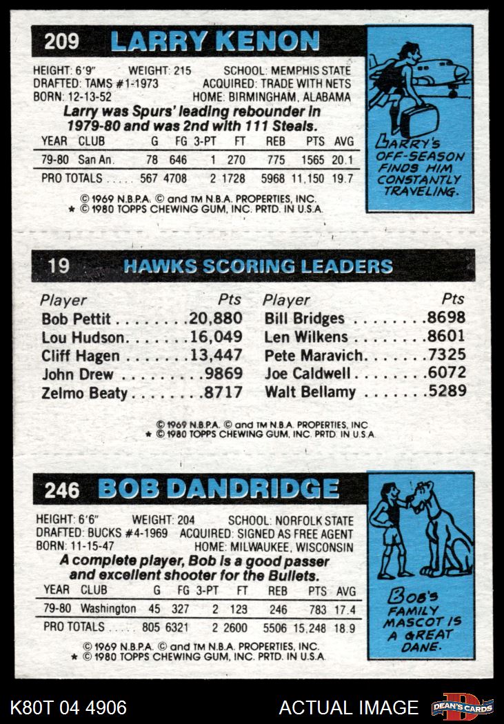 1980 Topps - Bob Dandridge / John Drew / Larry Kenon 246 / 19 / 209 8 - NM/MT
