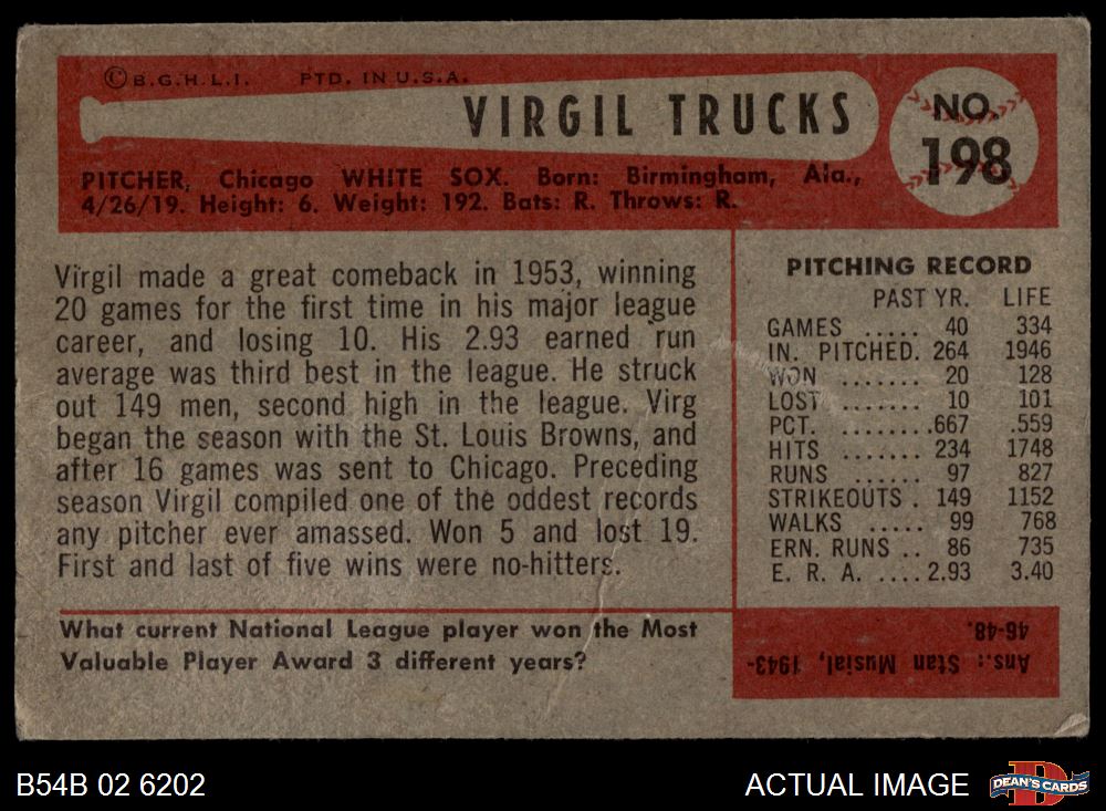 1954 Bowman #198 Virgil Trucks 1.5 - FAIR