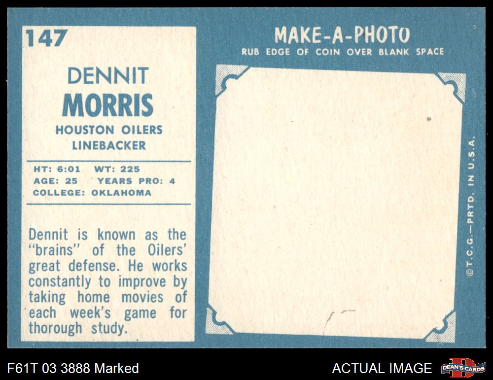 1961 Topps Football (1,328 available)1961 Topps Oilers (64 available)