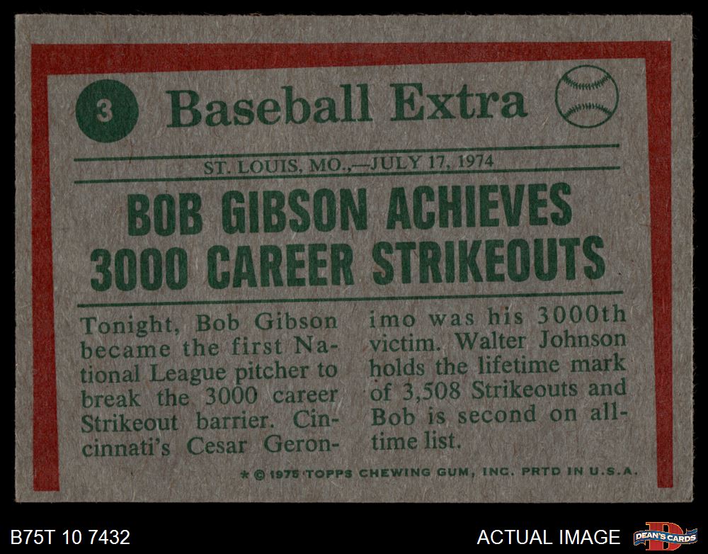 1975 Topps #3 - Bob Gibson Throws 3000th Strikeout 3 - VG
