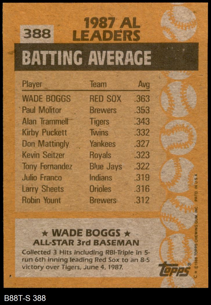 1988 Topps #388 - Wade Boggs All-Star 8 - NM/MT