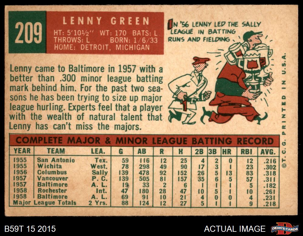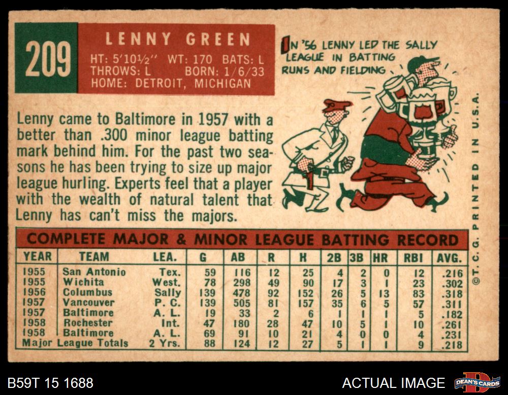 1959 Topps #209 Lenny Green 4 - VG/EX
