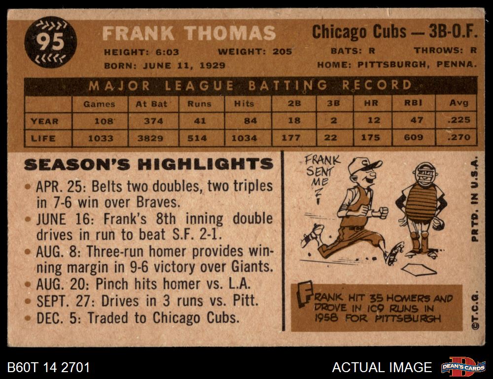 1960 Topps #95 Frank Thomas 4 - VG/EX