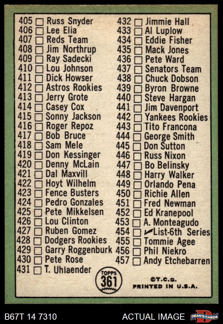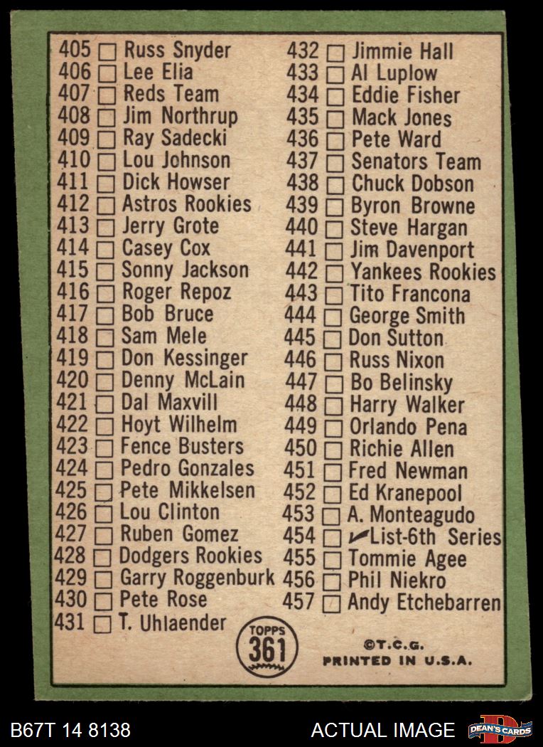 1967 Topps #361 Checklist 5