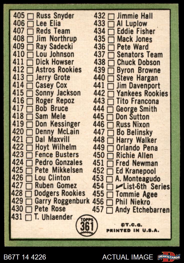 1967 Topps #361 - Roberto Clemente Checklist 5 6.5 - EX/MT+