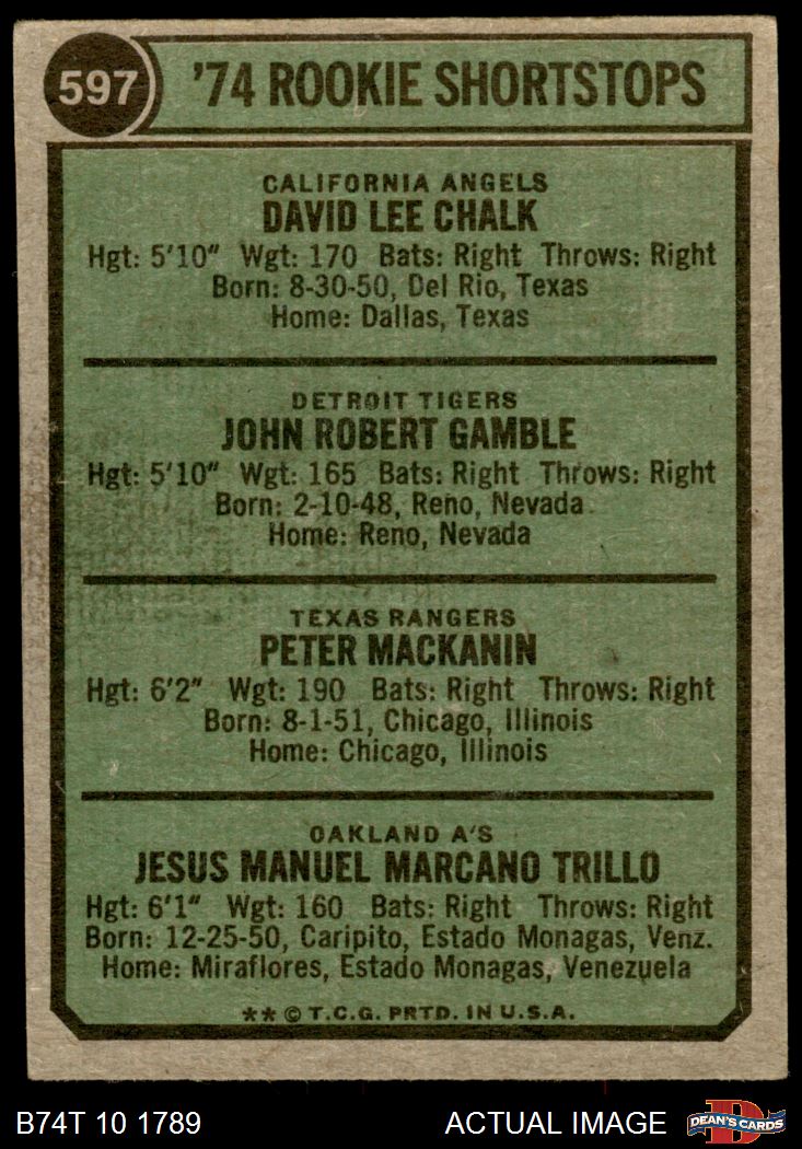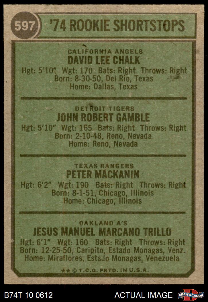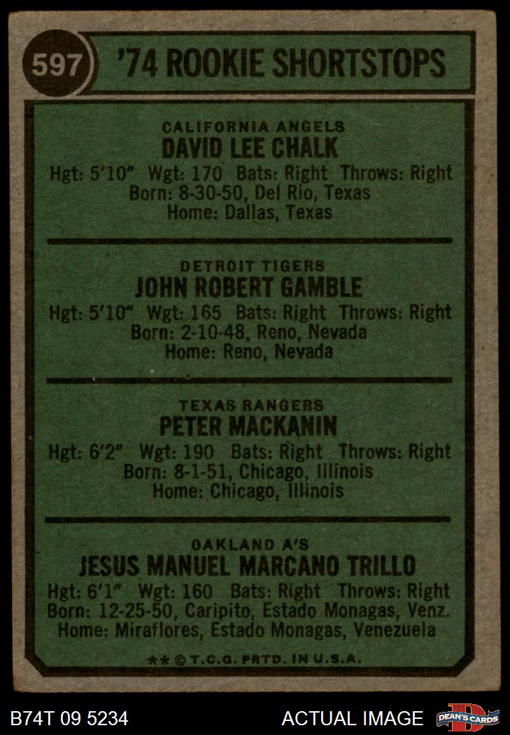 1974 Topps #597 Rookie Shortstops