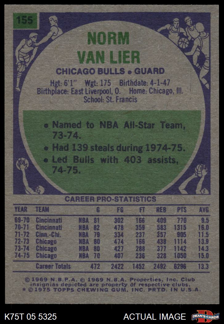 1975 Topps #155 Norm Van Lier 6 - EX/MT