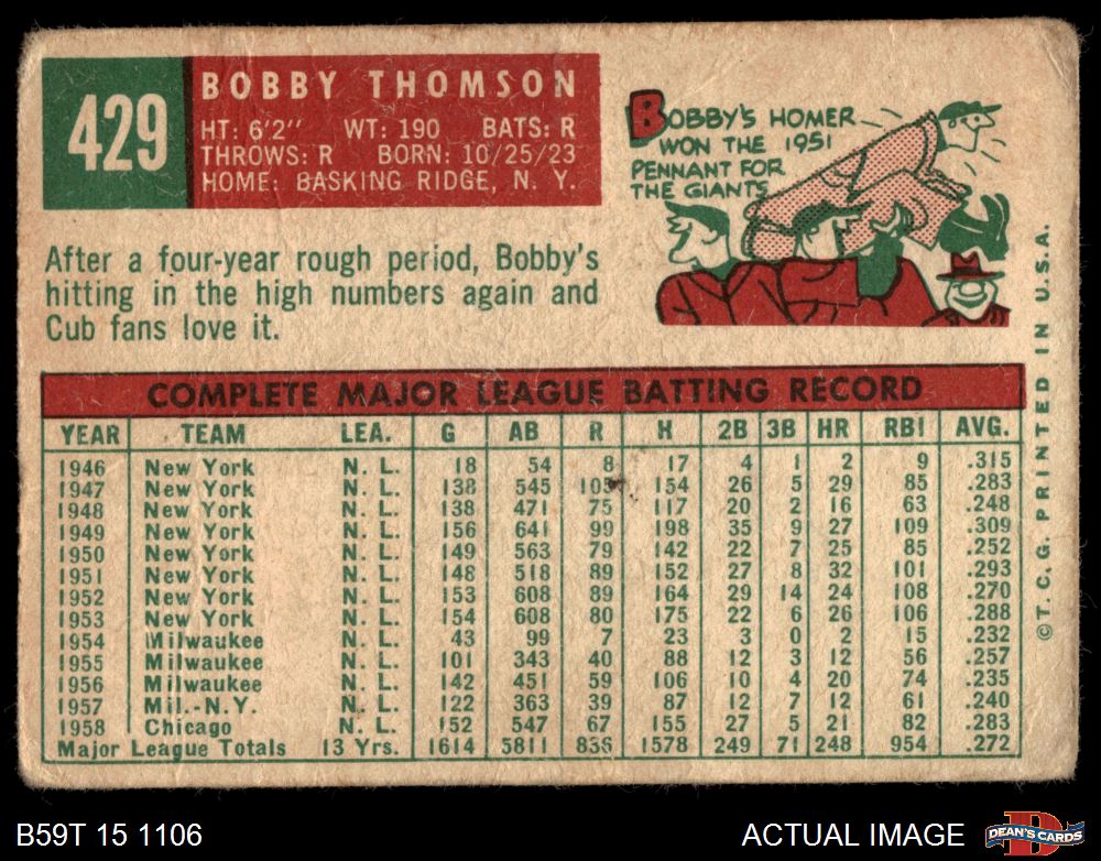1959 Topps #429 Bobby Thomson Front Thumbnail