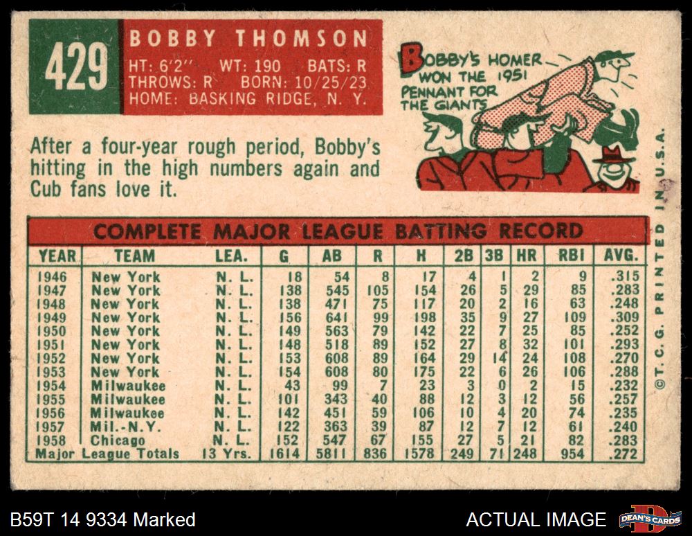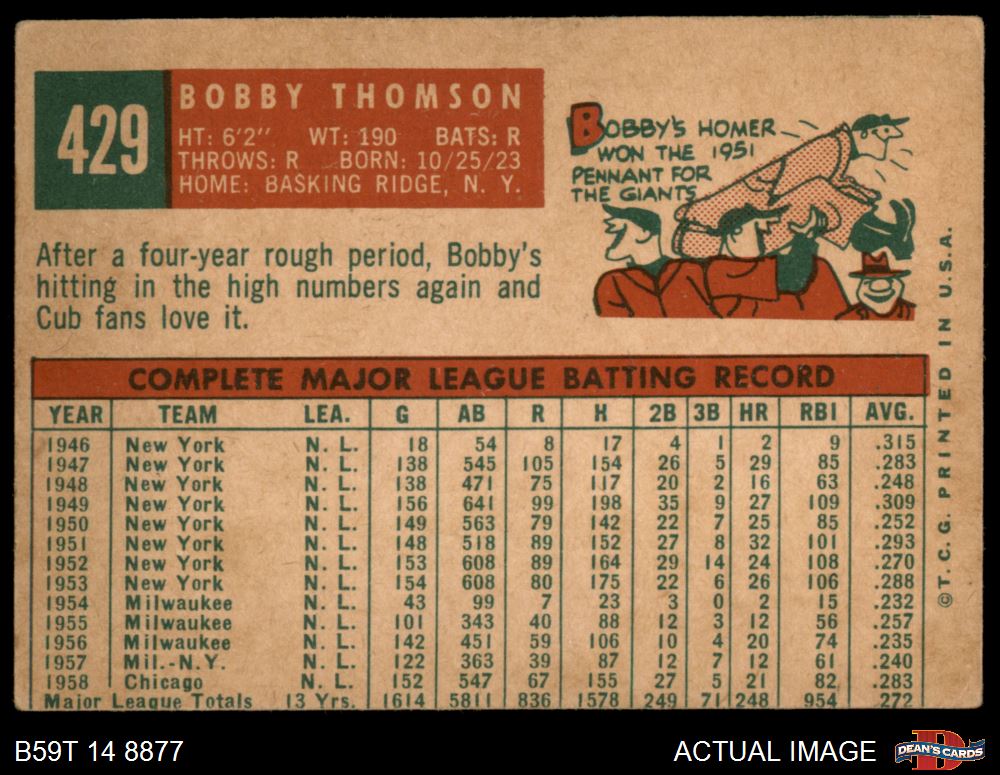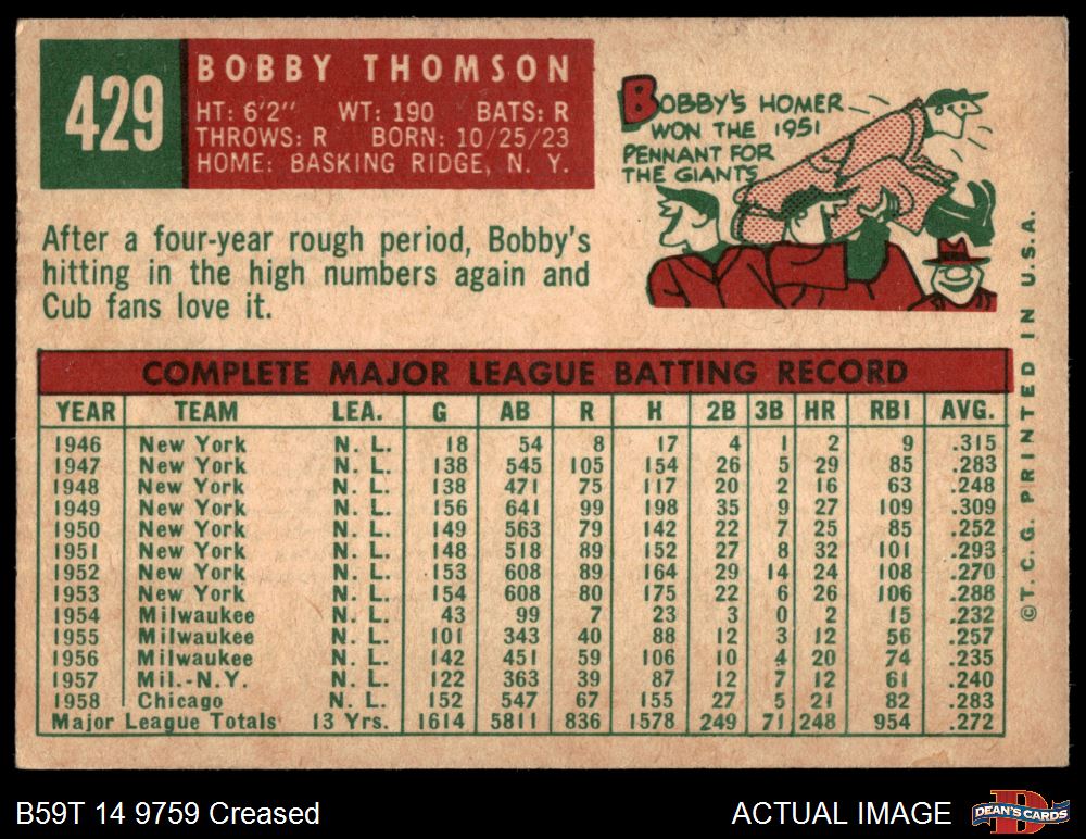 1959 Topps #429 Bobby Thomson