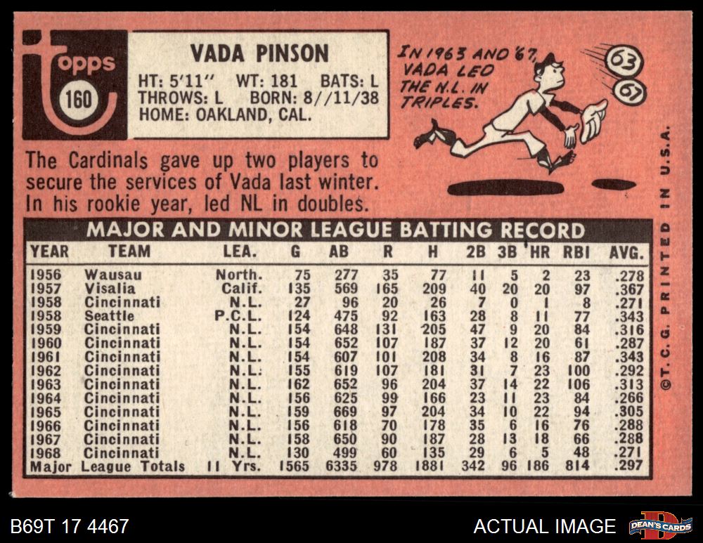 1969 Topps #160 Vada Pinson 5 - EX
