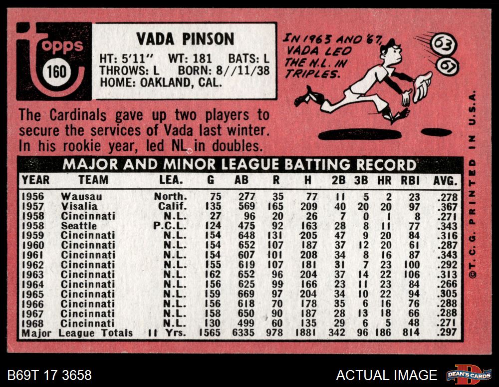 1969 Topps #160 Vada Pinson 6 - EX/MT